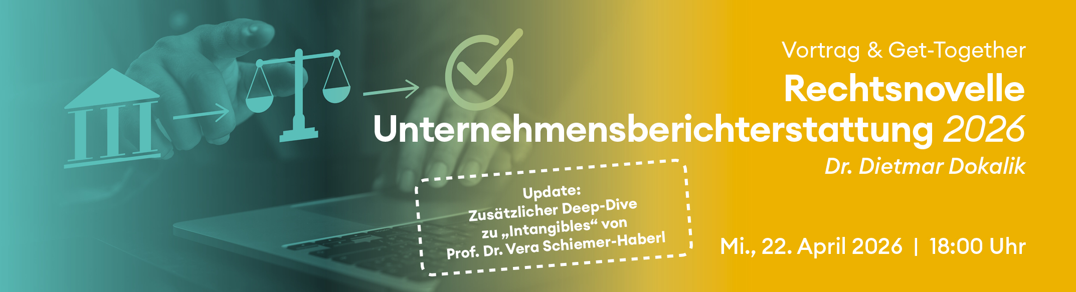 Abendveranstaltung | Rechtsnovelle Unternehmensberichterstattung 2026_Deep Dive | Mi., 22.04.2026, 18:00 Uhr